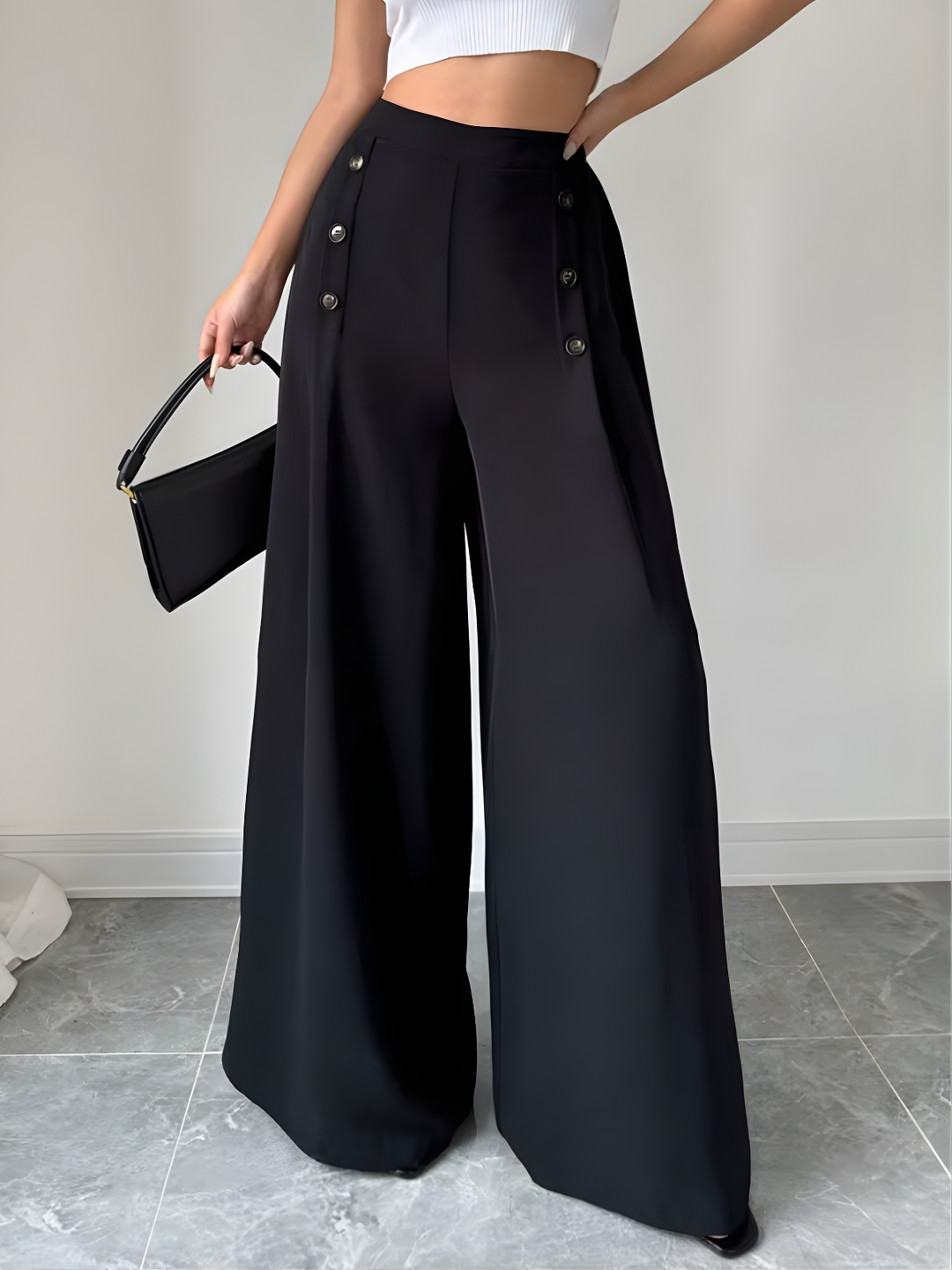 High-Waist Wide-Leg Button Pants